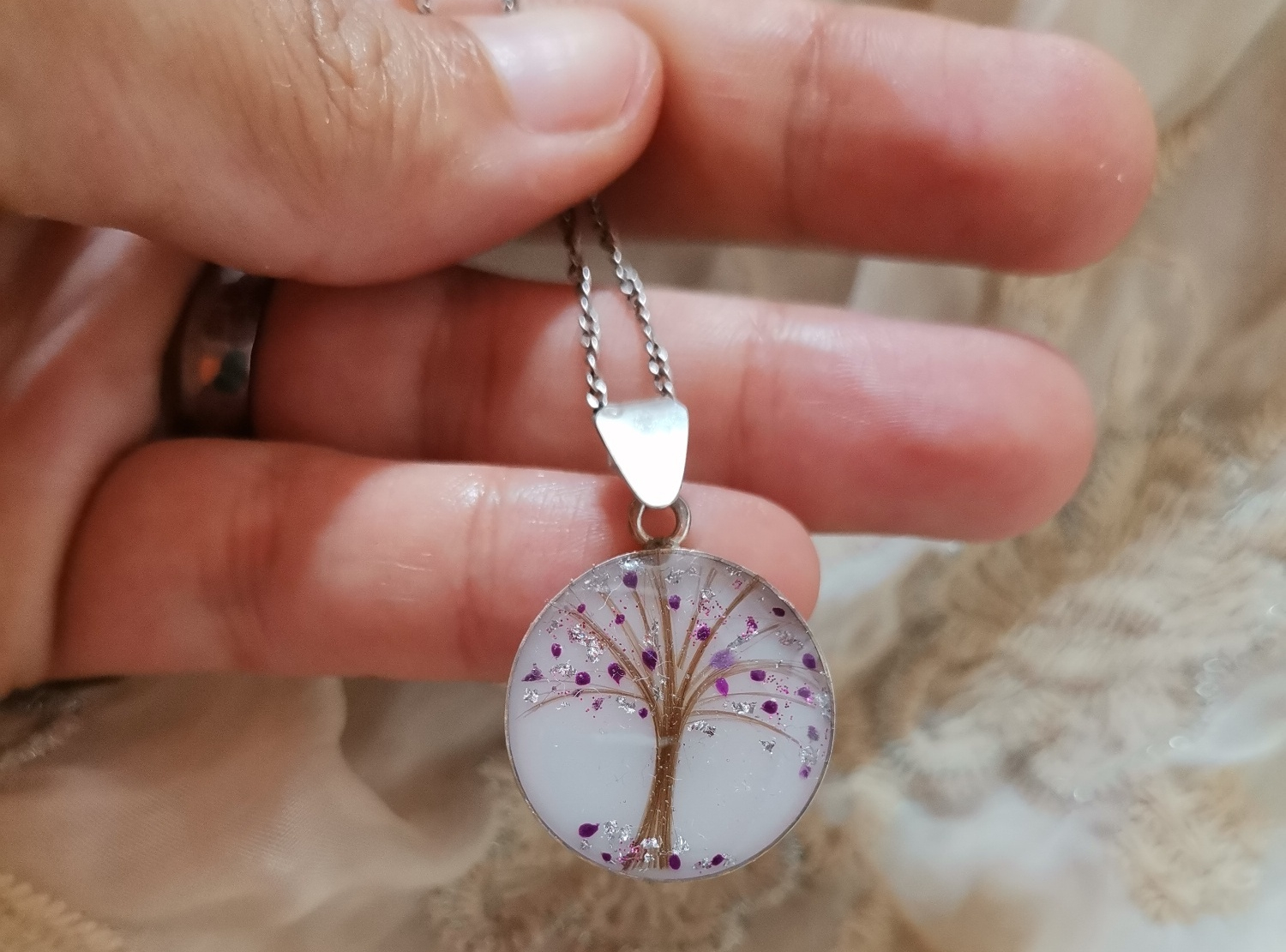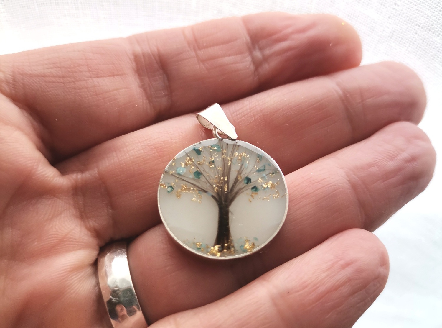 Posebnu emociju ovom privesku daje mogućnost ručnog oslikavanja kosicom, koje se najčešće oblikuje u motive drveta, srca ili znaka beskonačnosti, simbola života, ljubavi i večne povezanosti majke i deteta. Ovaj privezak nije samo nakit, već lična priča pretočena u bezvremenski oblik.